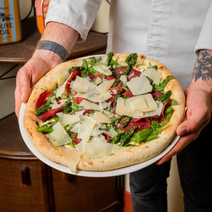 Nos pizzas à Montauban sont réalisées avec une pâte maison et des garnitures généreuses :